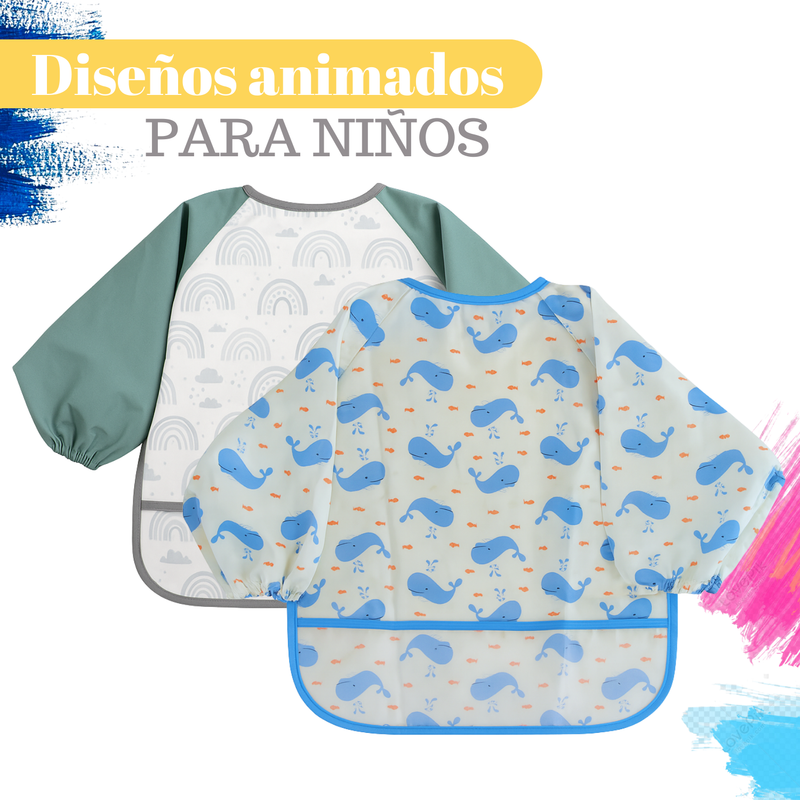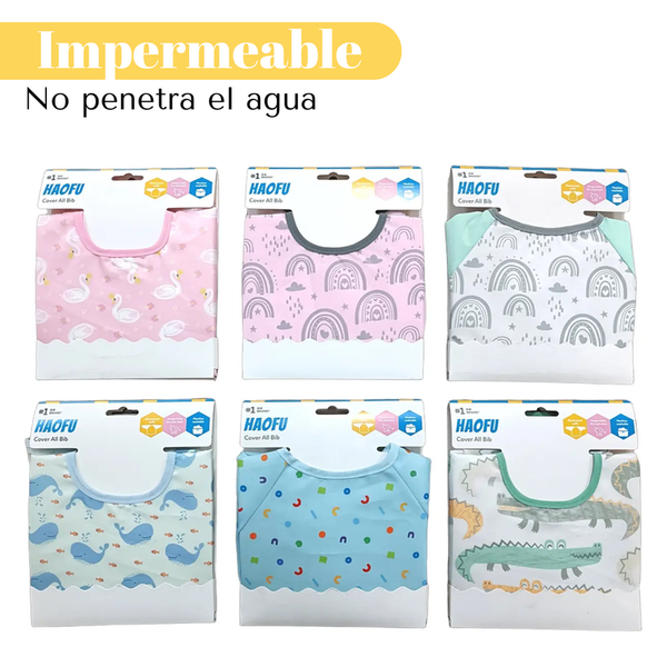 Pack 3 Delantales Baberos Impermeable 6-24 meses Manga Larga